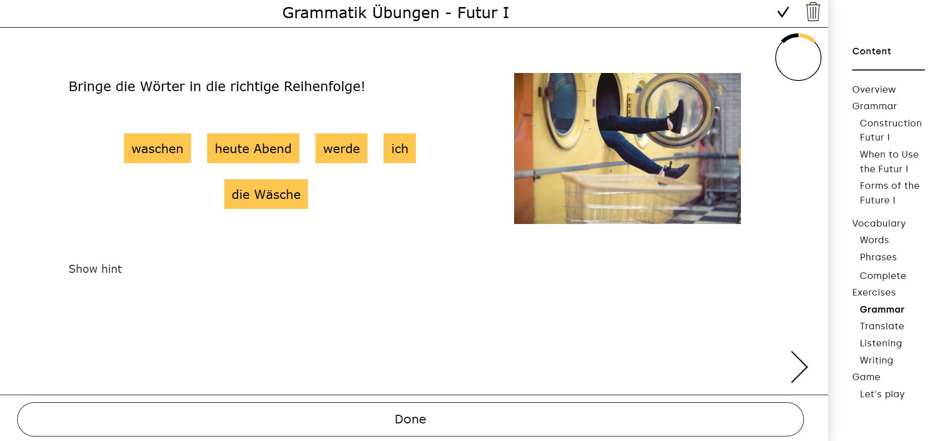 "Awesome! Klasse! I really loved my class. The teacher was super patient. The materials are of high quality and very useful. They really care about one's learning and they are doing their best for us to understand and pronounce everything correctly. I truly recommend it."